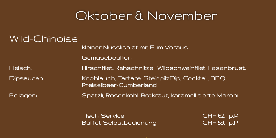 Tisch-Service CHF 55.- p.P. ab gesamt 15 Personen als Buffet CHF 52.- p.P.